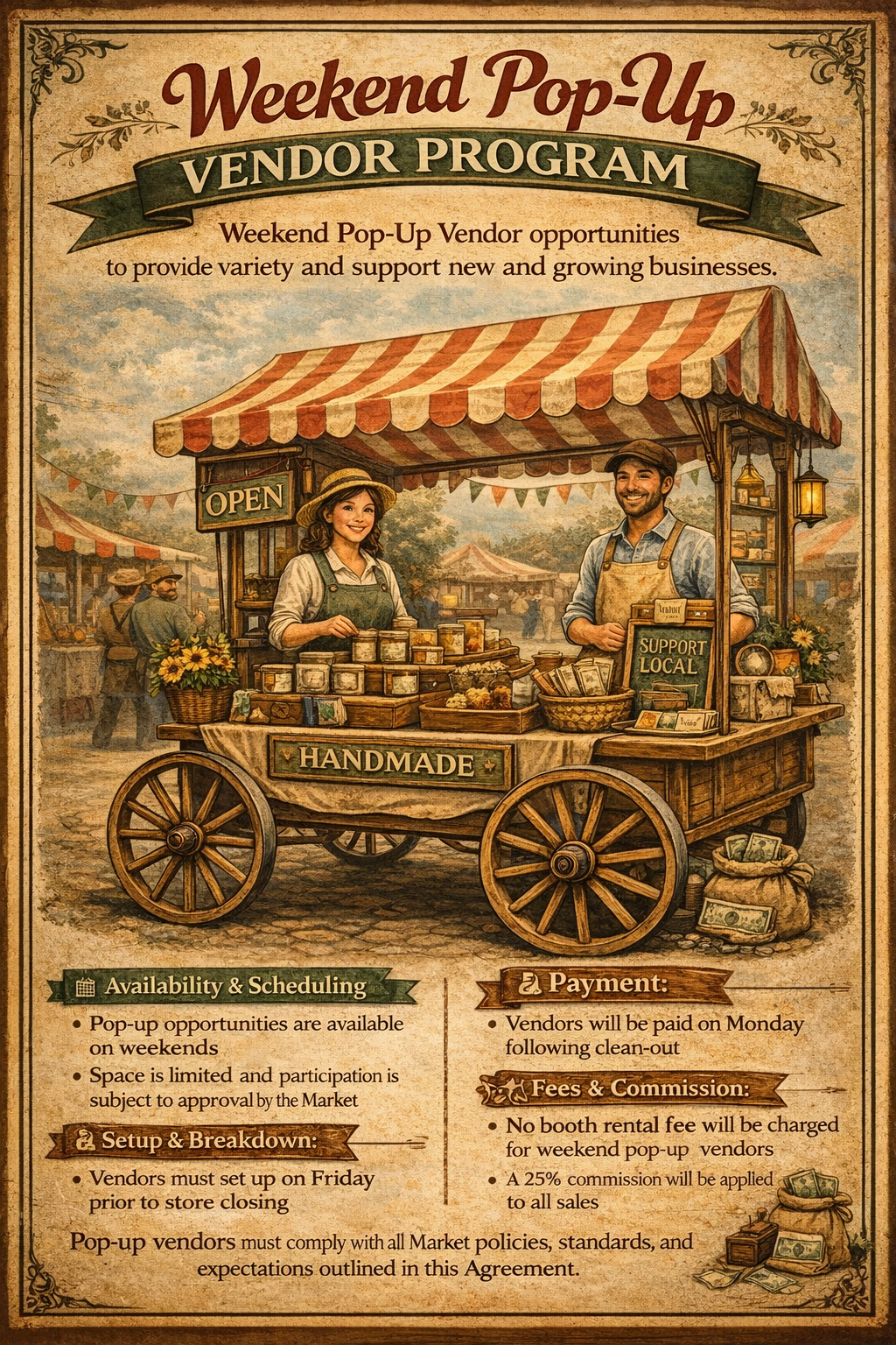 Pop-up vendors may participate once per month unless otherwise approved